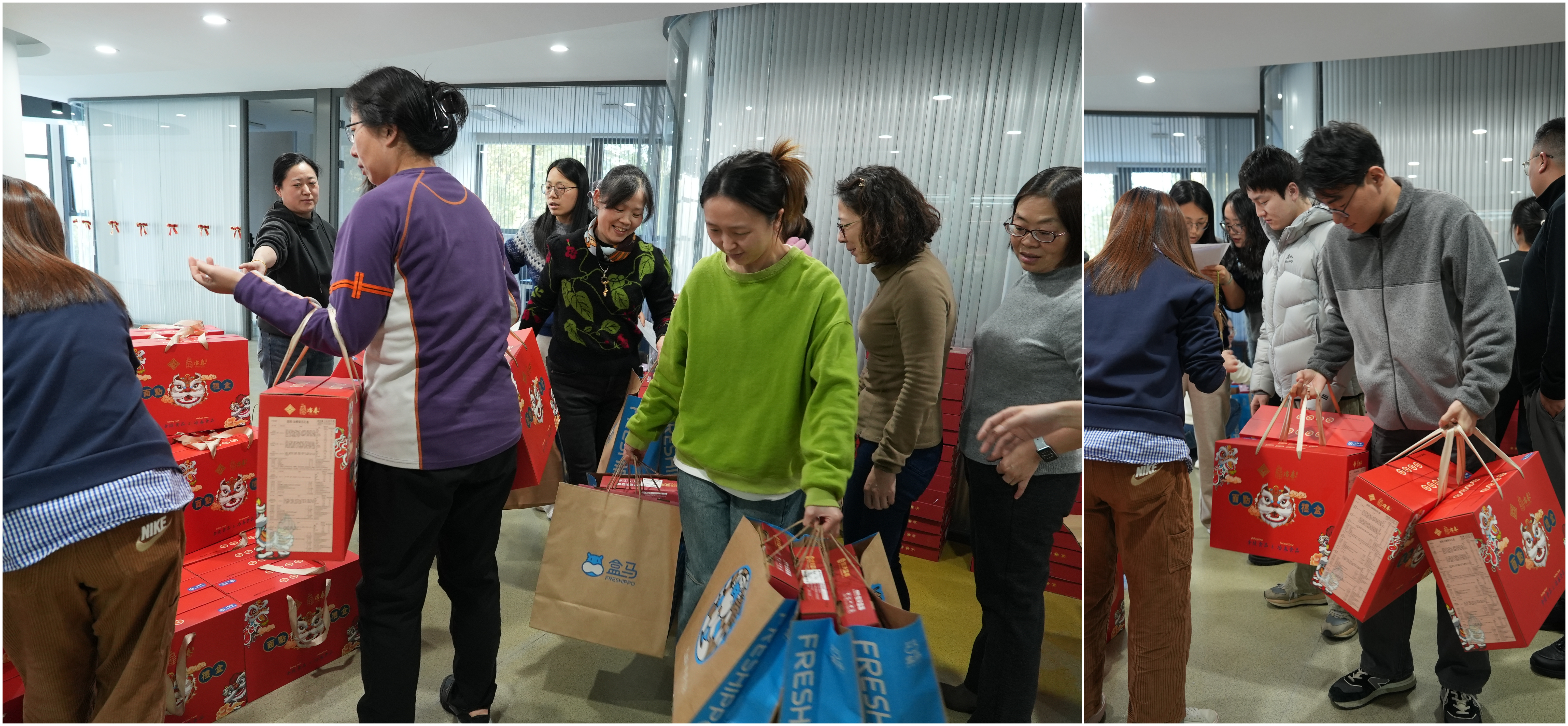 礼品发放现场秩序井然,洋溢着温馨、喜庆、祥和的节日氛围。各部门代表有序排队、统一领取福利礼盒,再逐一分发至每位员工手中,大家脸上都洋溢着喜悦的笑容。希望通过这份节礼,让大家提前感受到浓浓的年味和公司的温度。